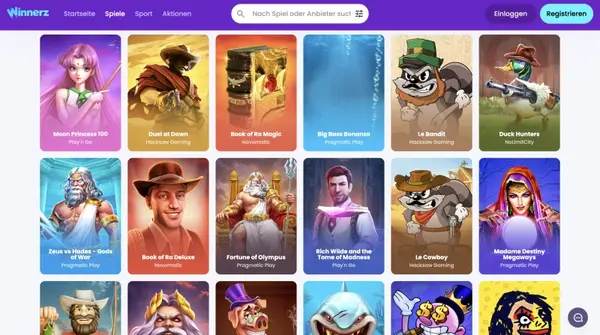 Wir arbeiten mit großen Studios, die für stabiles Gameplay und klare Regeln bekannt sind. Unsere Anbieter-Liste umfasst NetEnt, Play’n GO, Pragmatic Play, Evolution Gaming, Nolimit City, Microgaming, Quickspin, Red Tiger Gaming, Relax Gaming und Big Time Gaming. Diese Mischung unterstützt eine breite Bandbreite an Volatilität und Features bei Slots und Live-Tischen. Mit diesem Line-up hält Winnerz die Lobby vielfältig und über mehrere Spielstile hinweg aktuell.